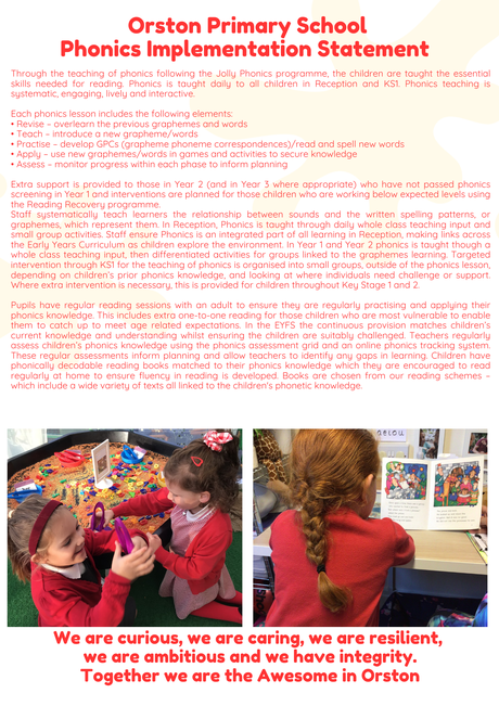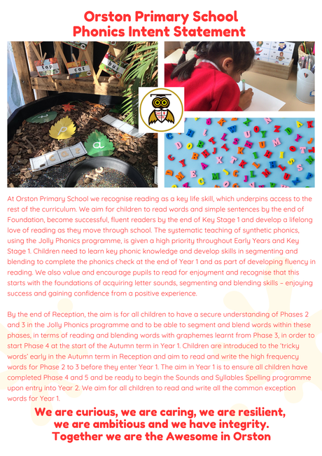 Our Phonics Intent, Implementation & Impact statements. Jolly Phonics Sequence of learning Jolly Phonics Actions