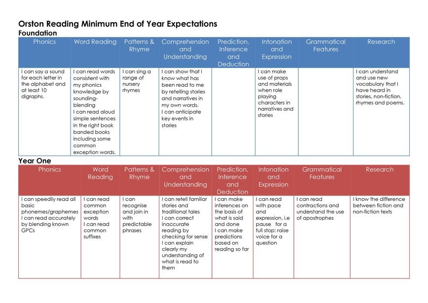 Progression of Skills Reading End of Year Expectations Our Quality Texts for English Our Reading Rocks Newsletter March 2022
