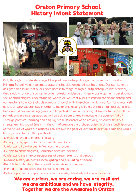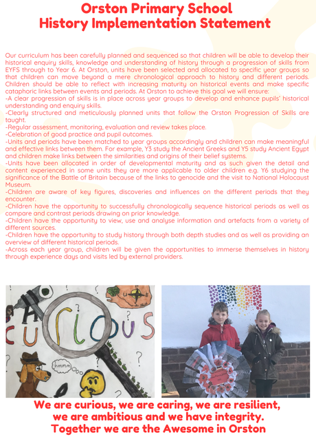 Online Resources National Curriculum for History History Curriculum Overview History National Curriculum Map History Progression of Skills & Knowledge