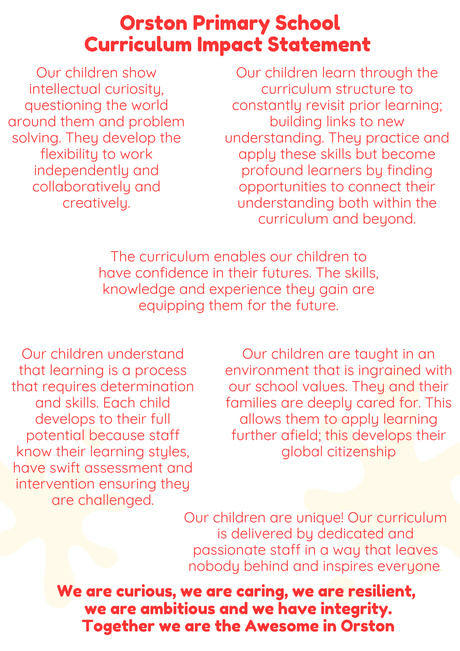 Our inclusion statement emphasises the importance of providing an inclusive learning environment for all pupils including those with SEND. Additional information on this can be found on our SEND page of the school website which can be found here-https://www.orston.notts.sch.uk/key-information/inclusion/
